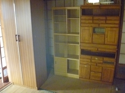 婚礼ダンス、食器棚、ブラウン管テレビ、応接用のソファ、机、パソコン、カーペット、洗濯機、空き缶やビン、可燃ごみ、布団など、色々なものがありました。